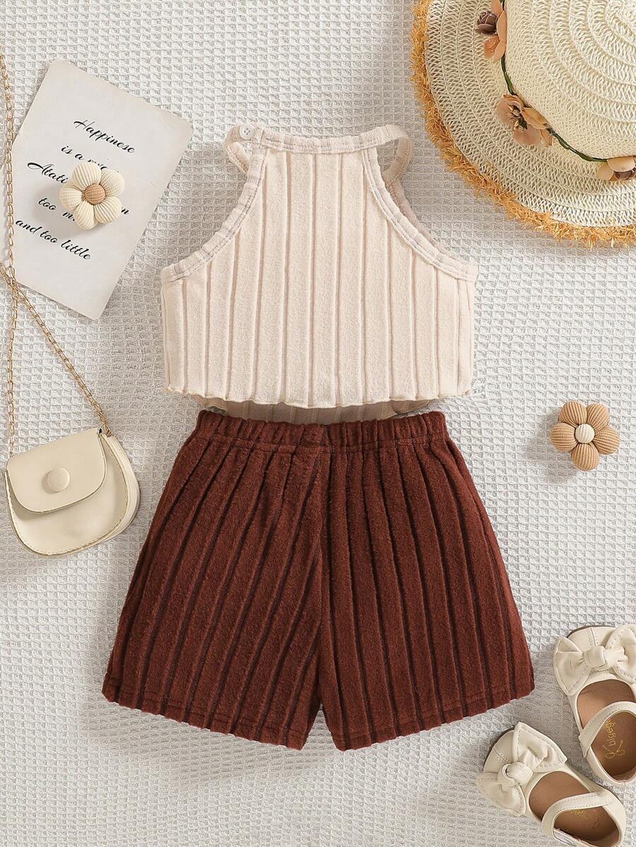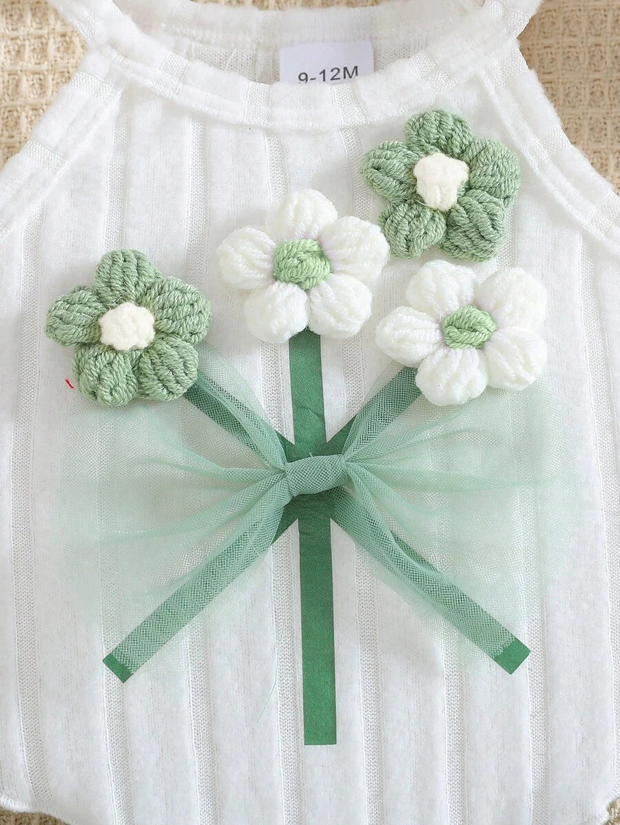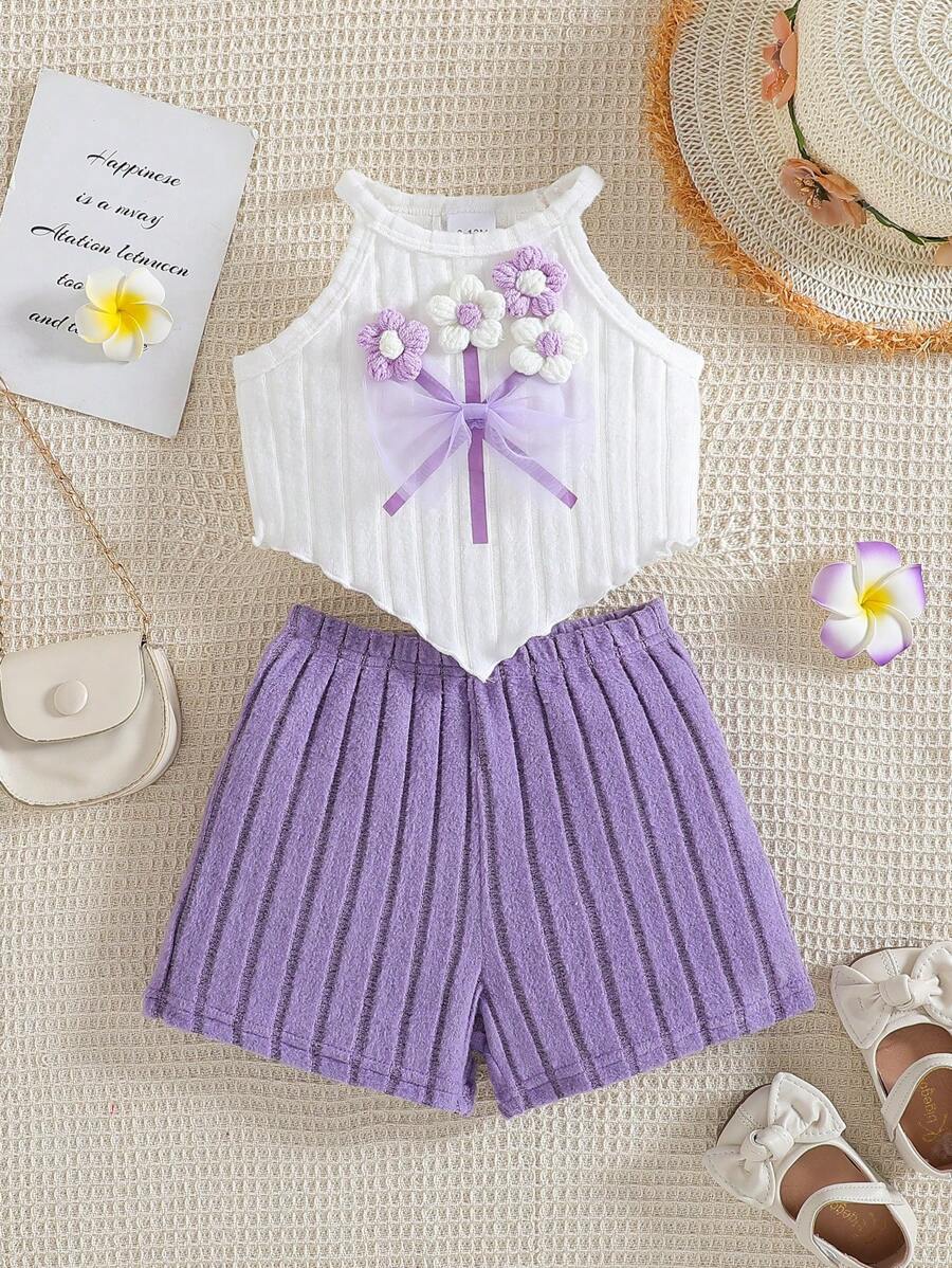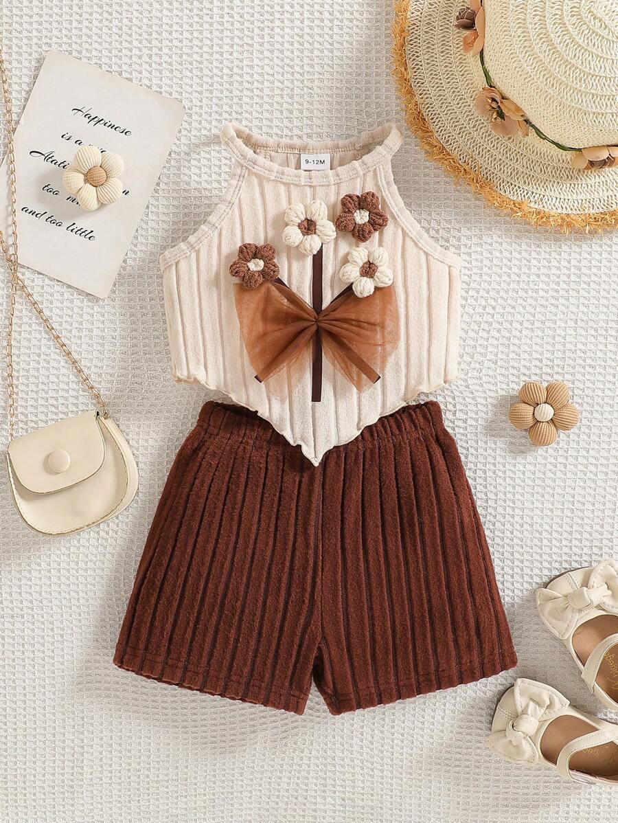 Baby Girls Stylish 2-Piece Set (0–3 Years) | Crochet Flower Halter Top & Ribbed Shorts Outfit
