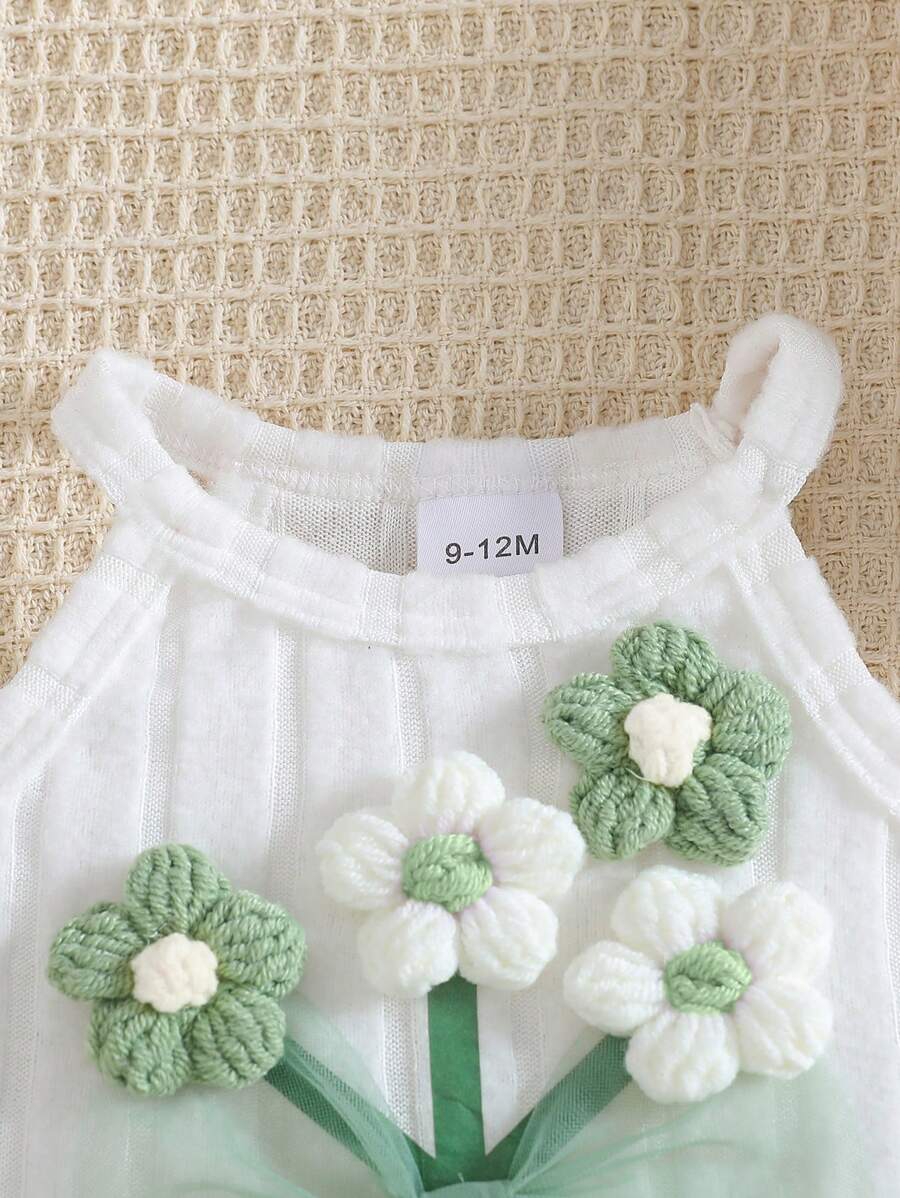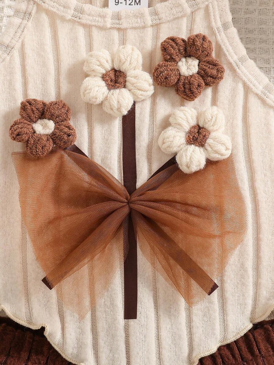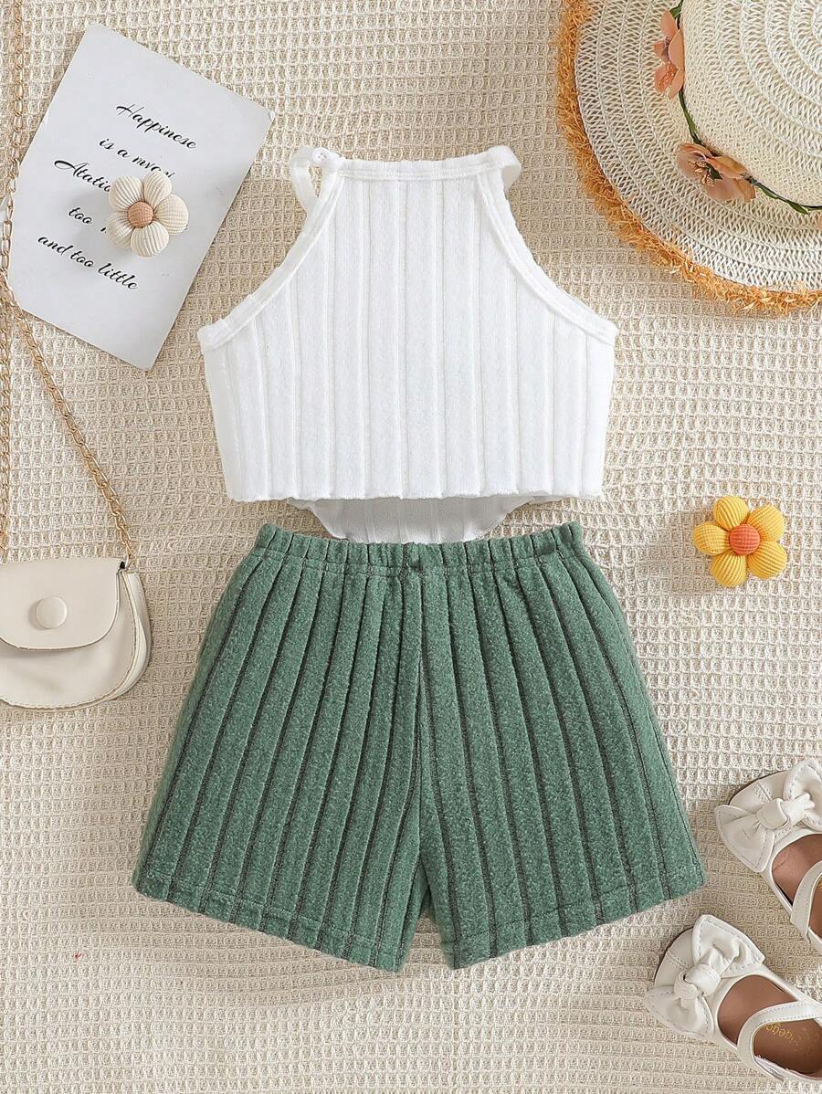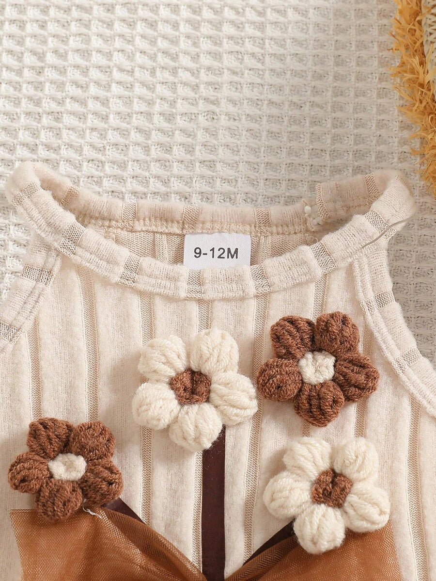 Baby Girls Stylish 2-Piece Set (0–3 Years) | Crochet Flower Halter Top & Ribbed Shorts Outfit