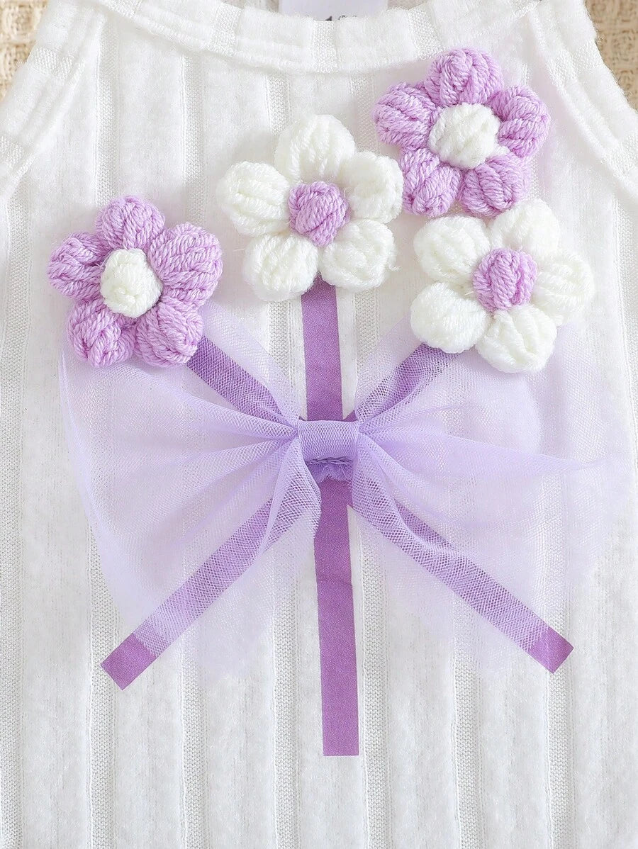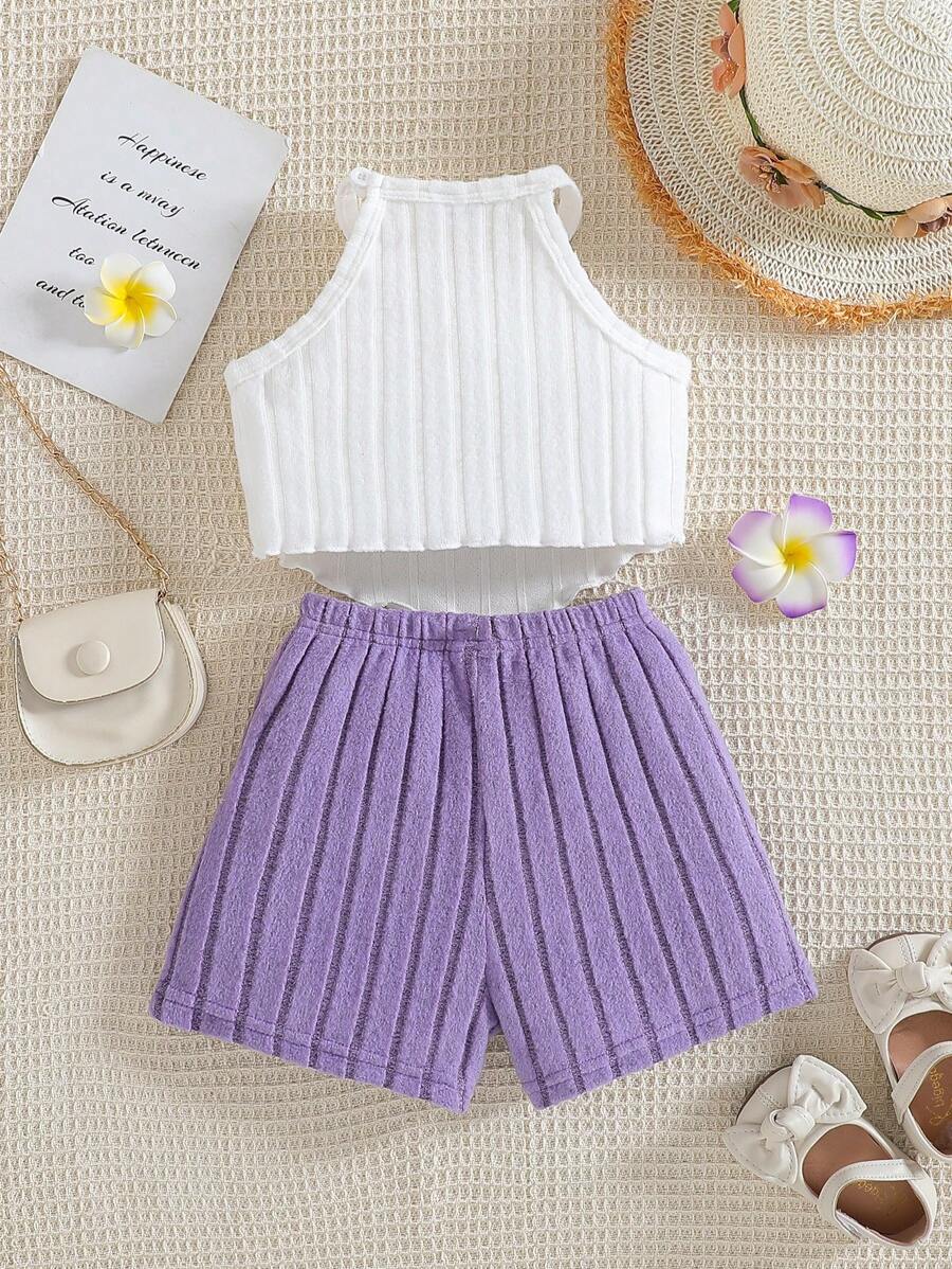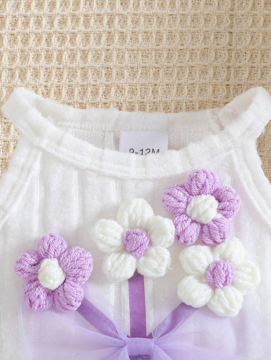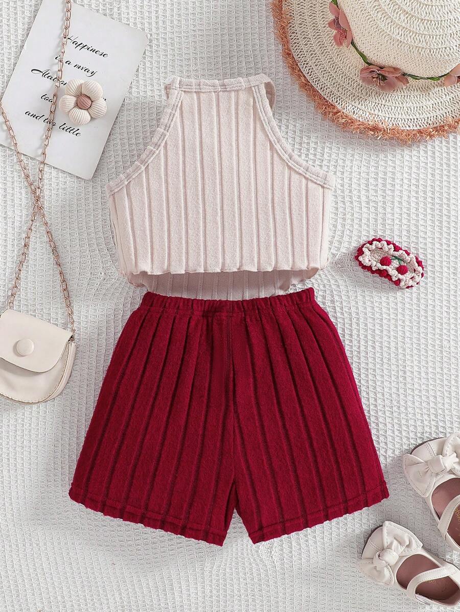 Baby Girls Stylish 2-Piece Set (0–3 Years) | Crochet Flower Halter Top & Ribbed Shorts Outfit
