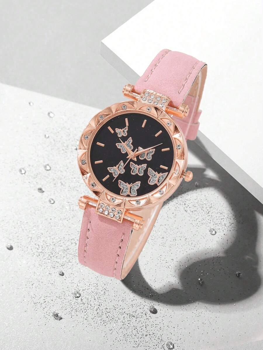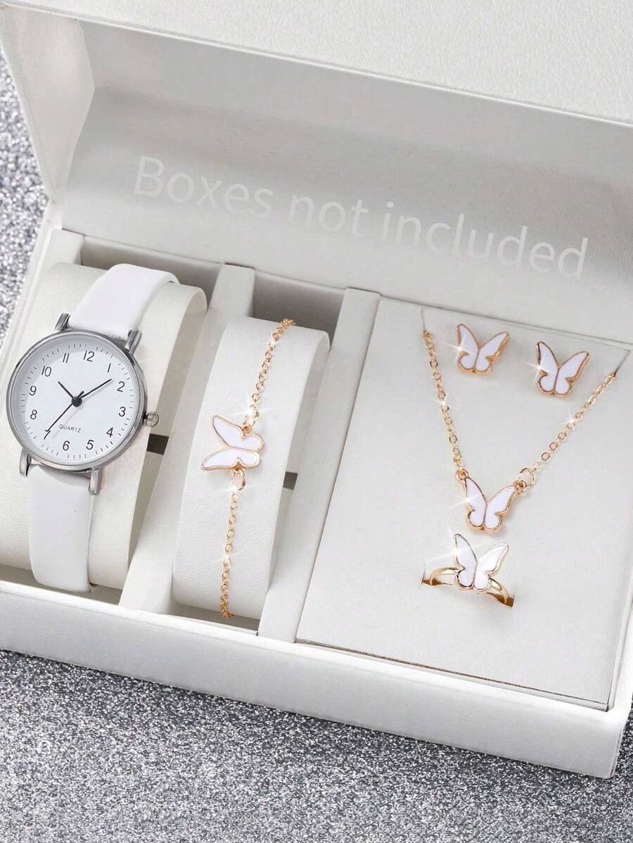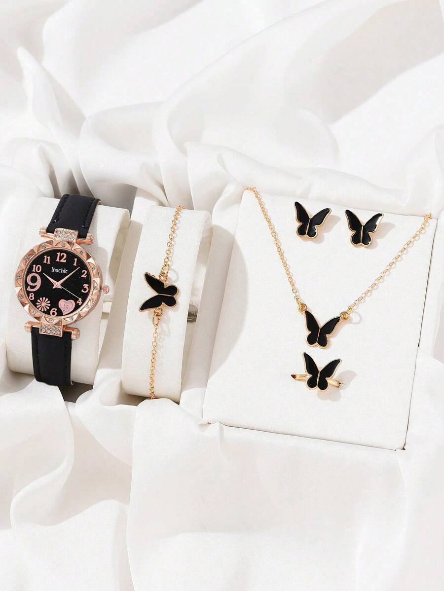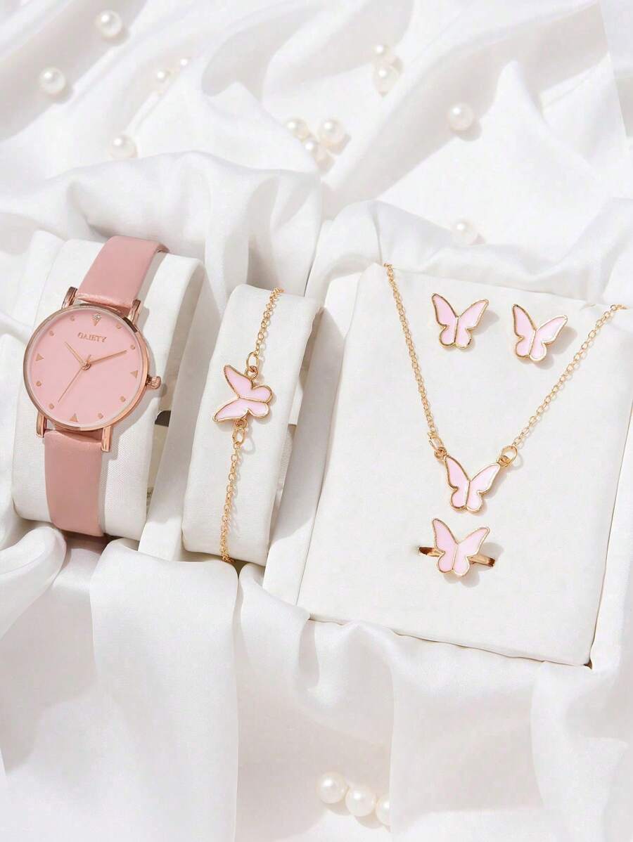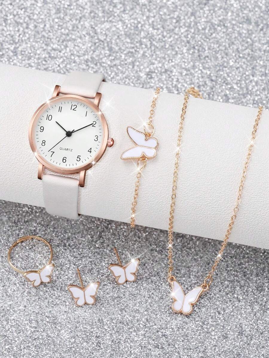 6pcs Cute Fashion Watch Set for Girls | Quartz Wrist Watches with Butterfly Design (Ages 3–14)