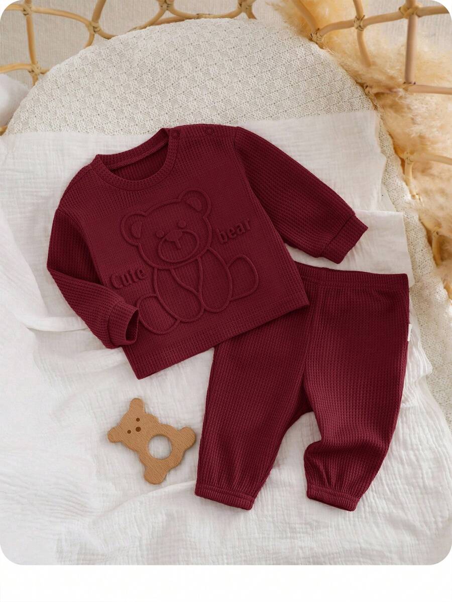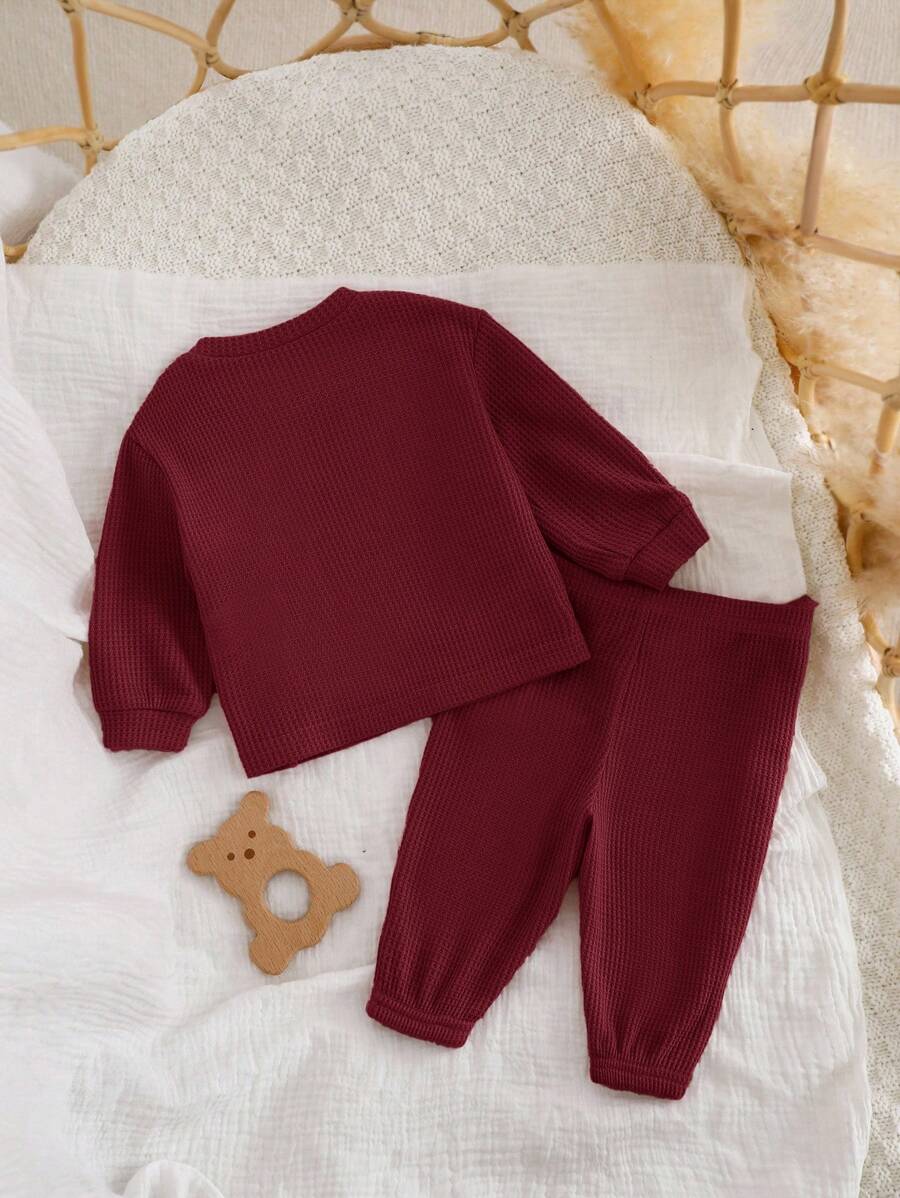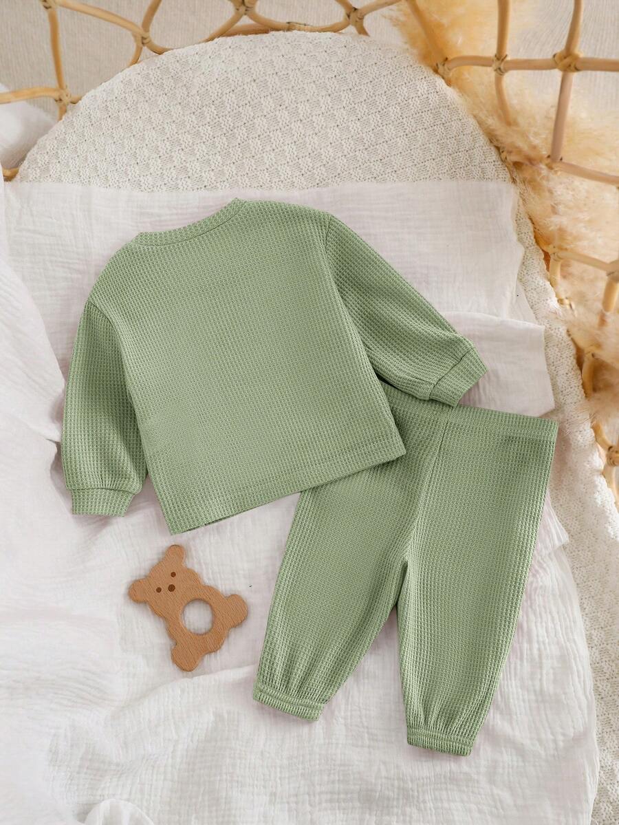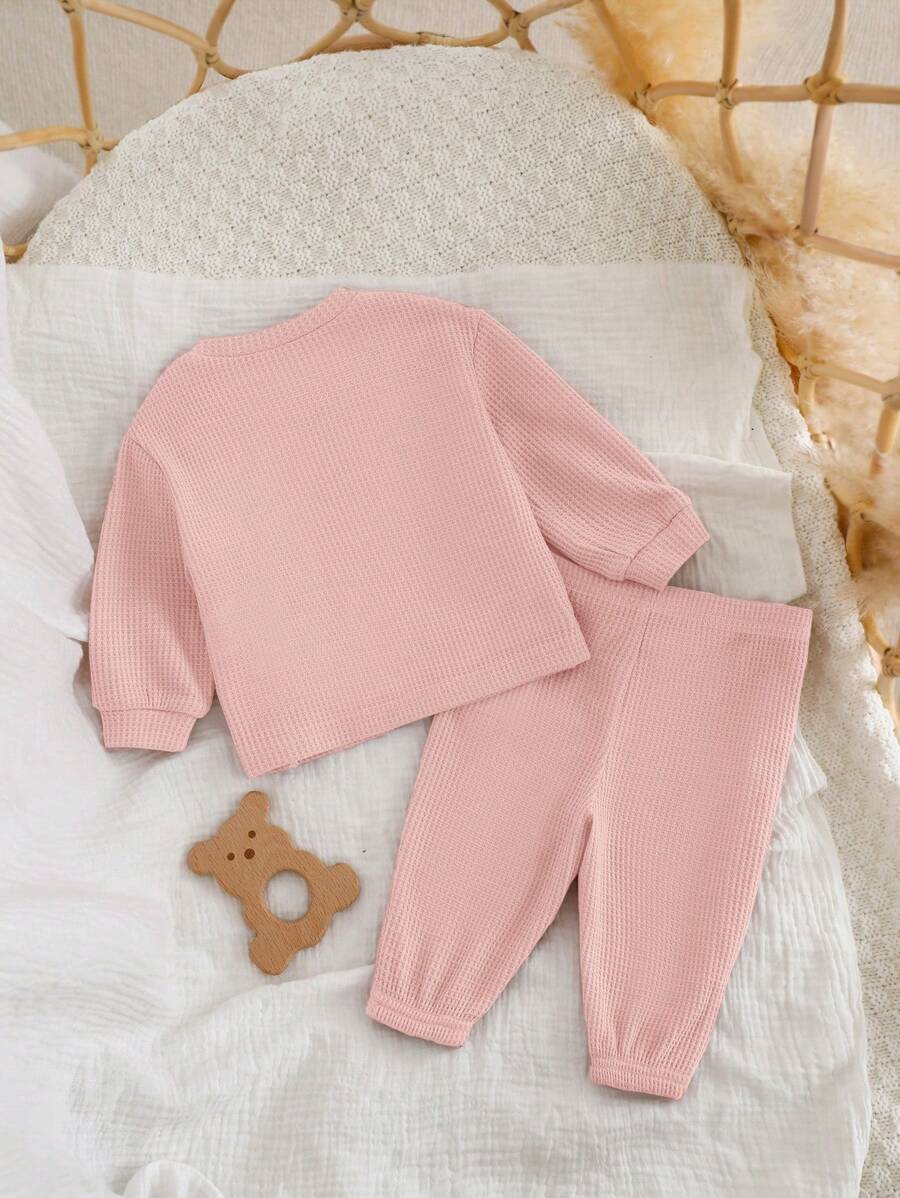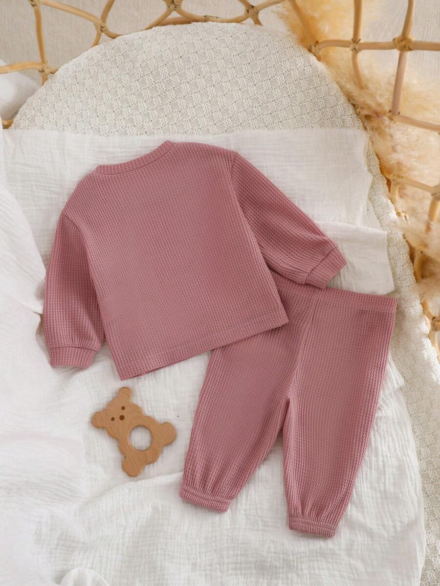 The pants feature a natural mid-waist fit, ensuring a secure yet comfortable feel throughout the day. With a regular fit silhouette, this outfit is ideal for newborns and infants who need soft, breathable, and skin-friendly clothing. The fabric is unlined, lightweight, and easy to care for, making it a reliable choice for busy parents.