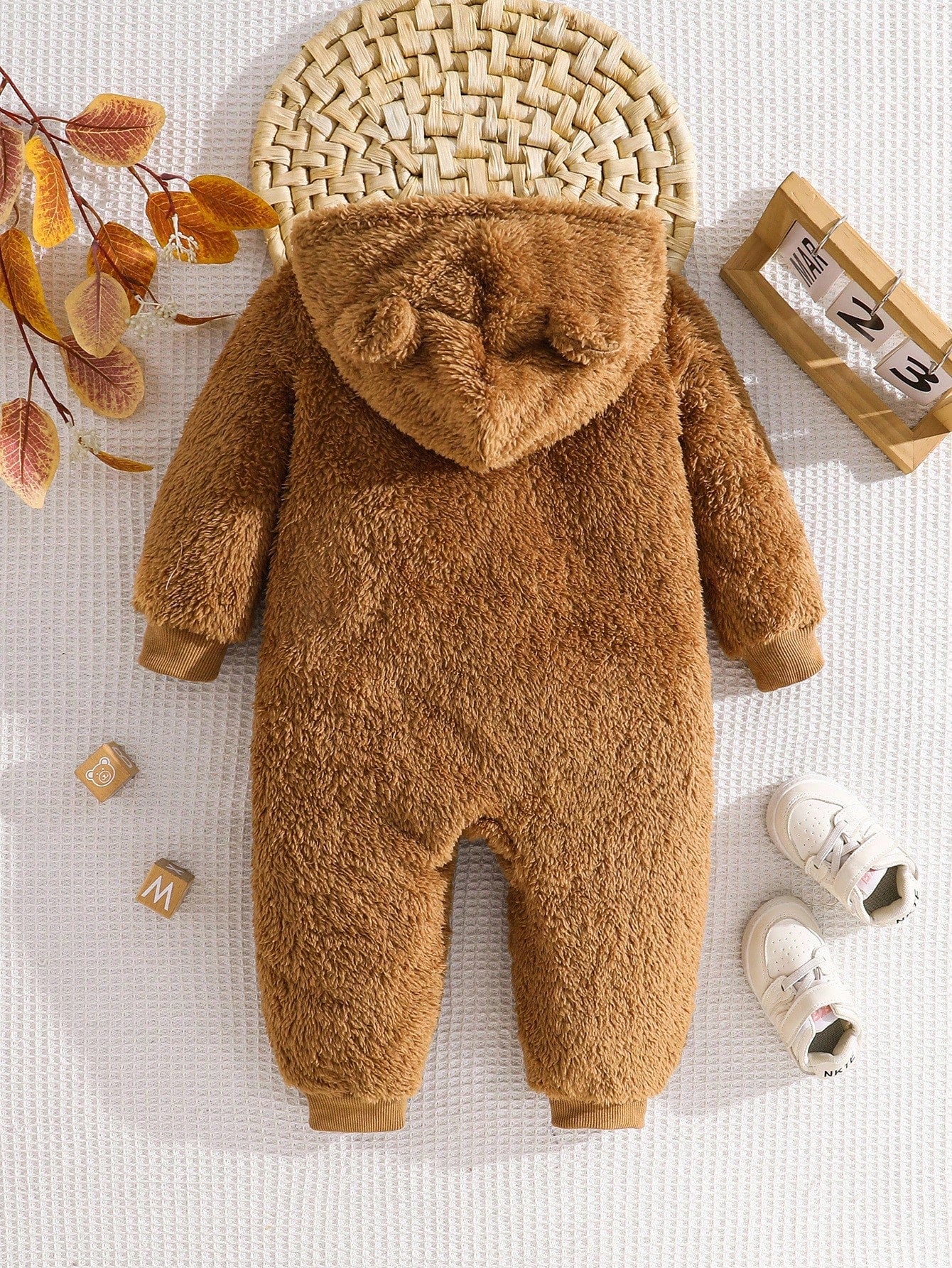 Cute Teddy Bear Fluffy Jumpsuit for Newborns | Warm Autumn & Winter Baby Onesie