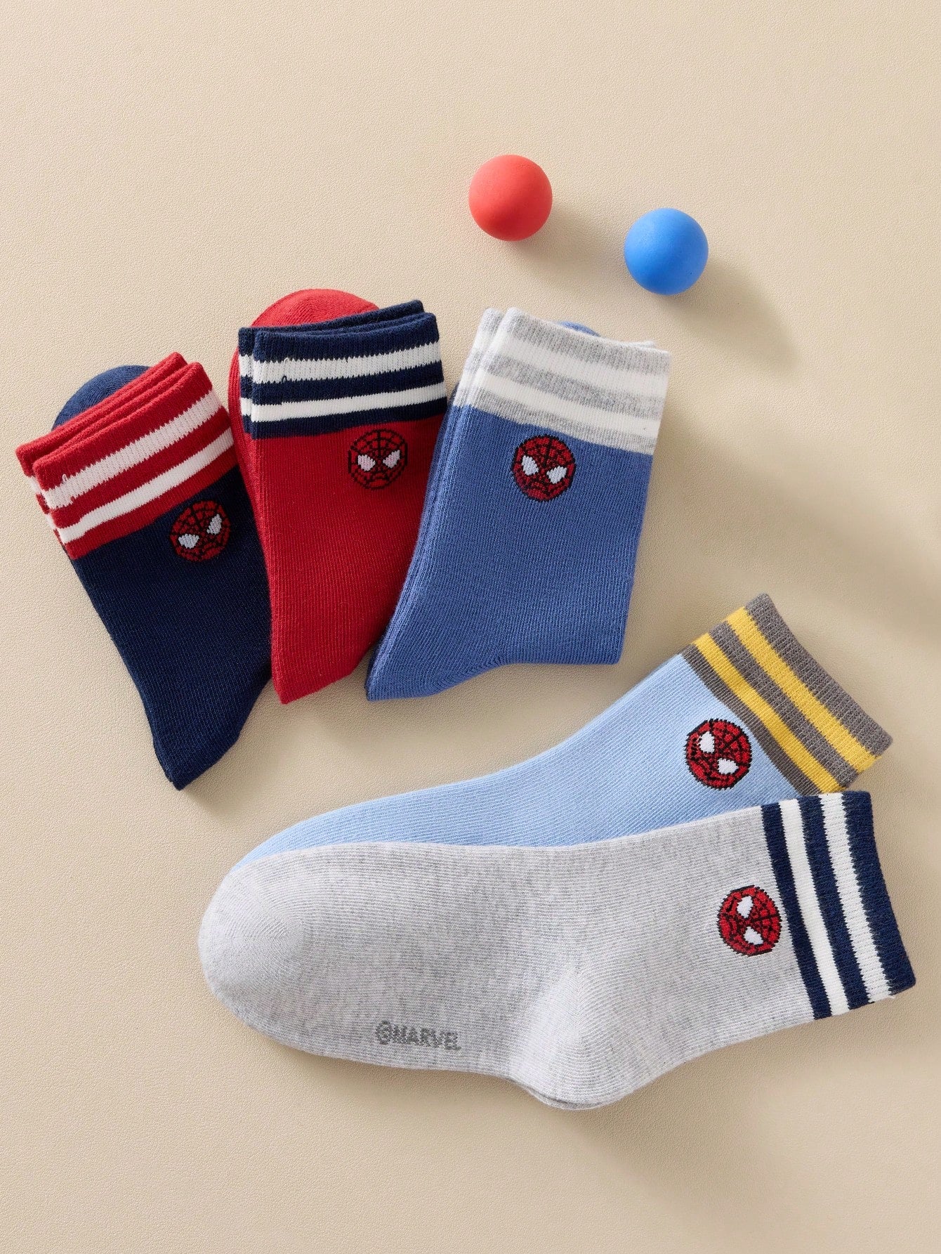 Marvel Spider-Man Kids Striped Socks | Soft, Stretchy, Non-Slip Superhero Socks