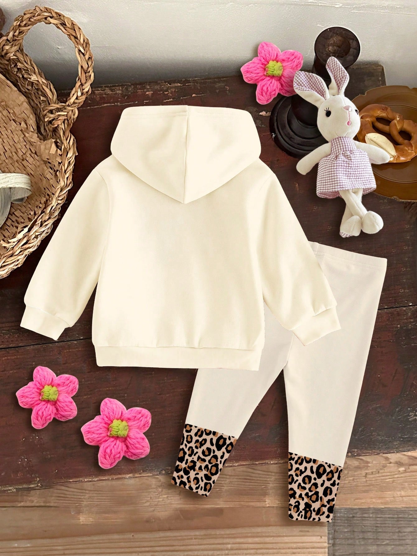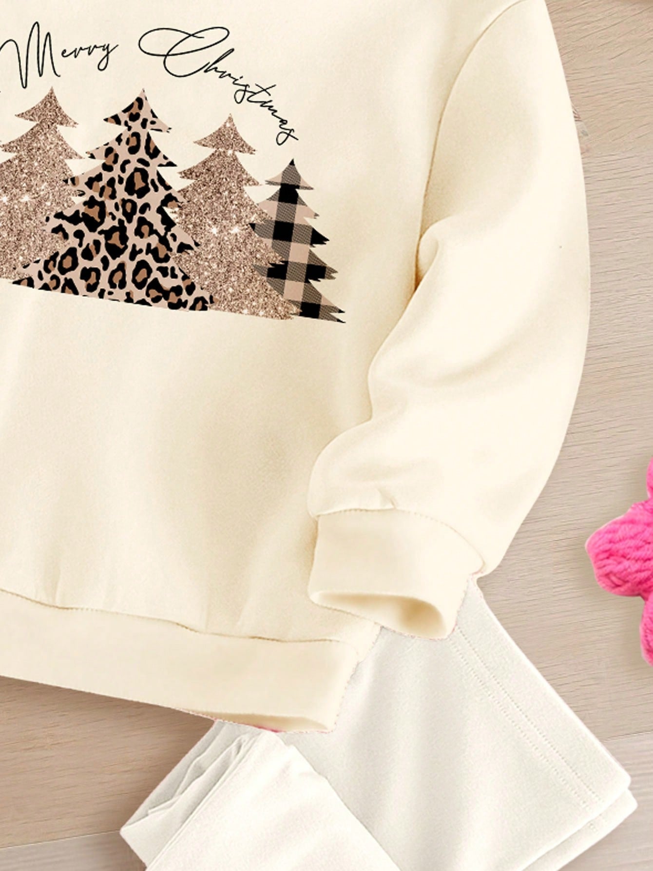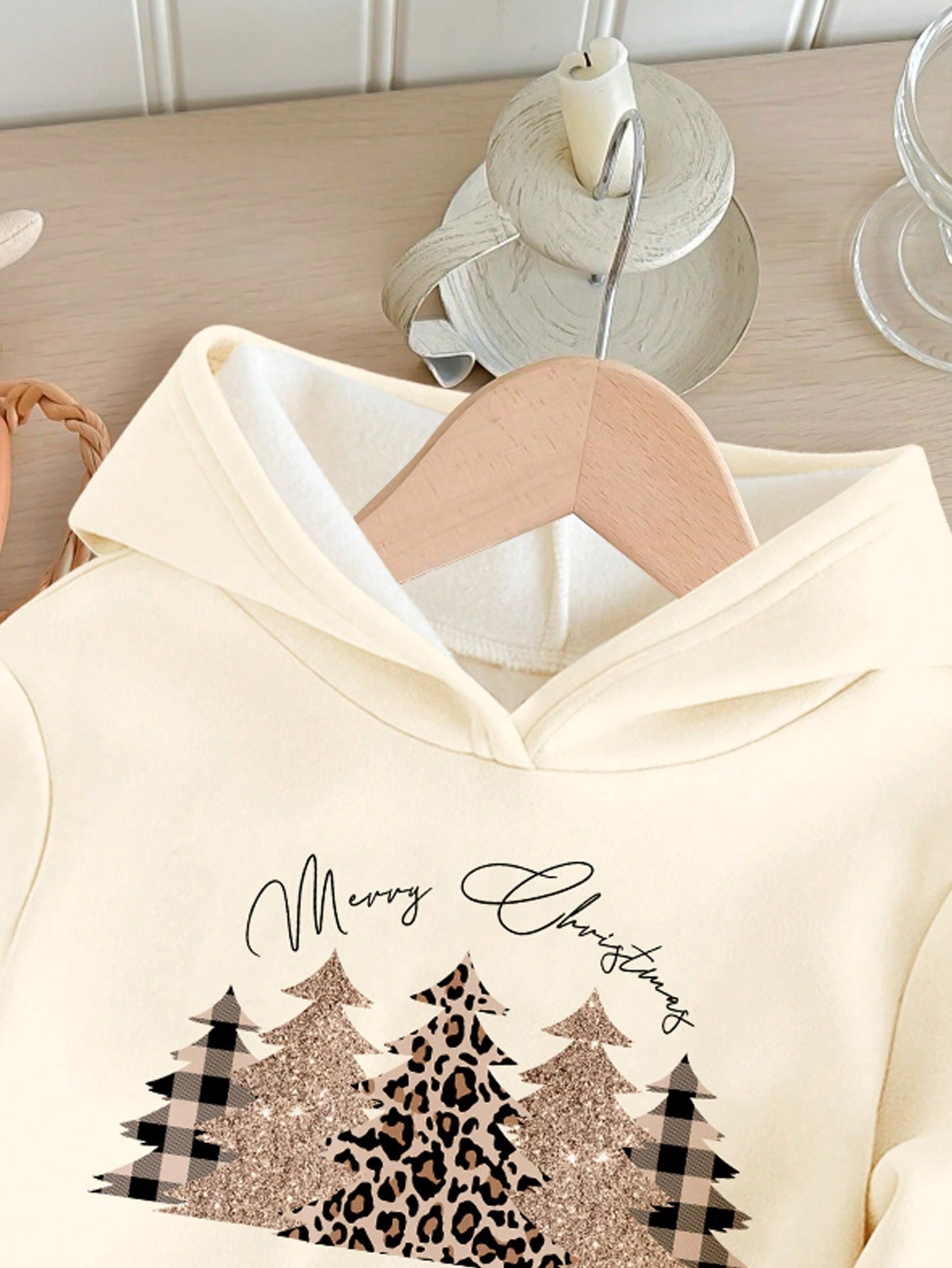 Merry Christmas Vintage Leopard Print Hoodie & Pants Set for Girls