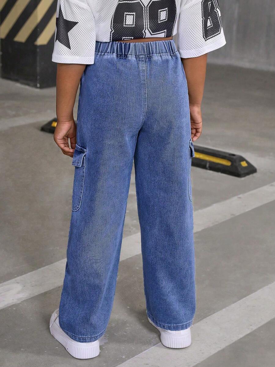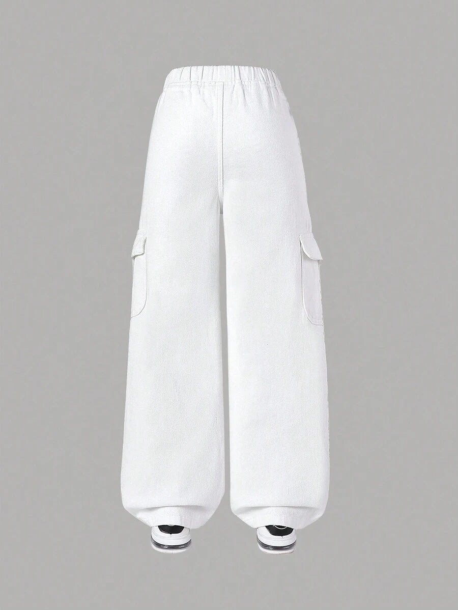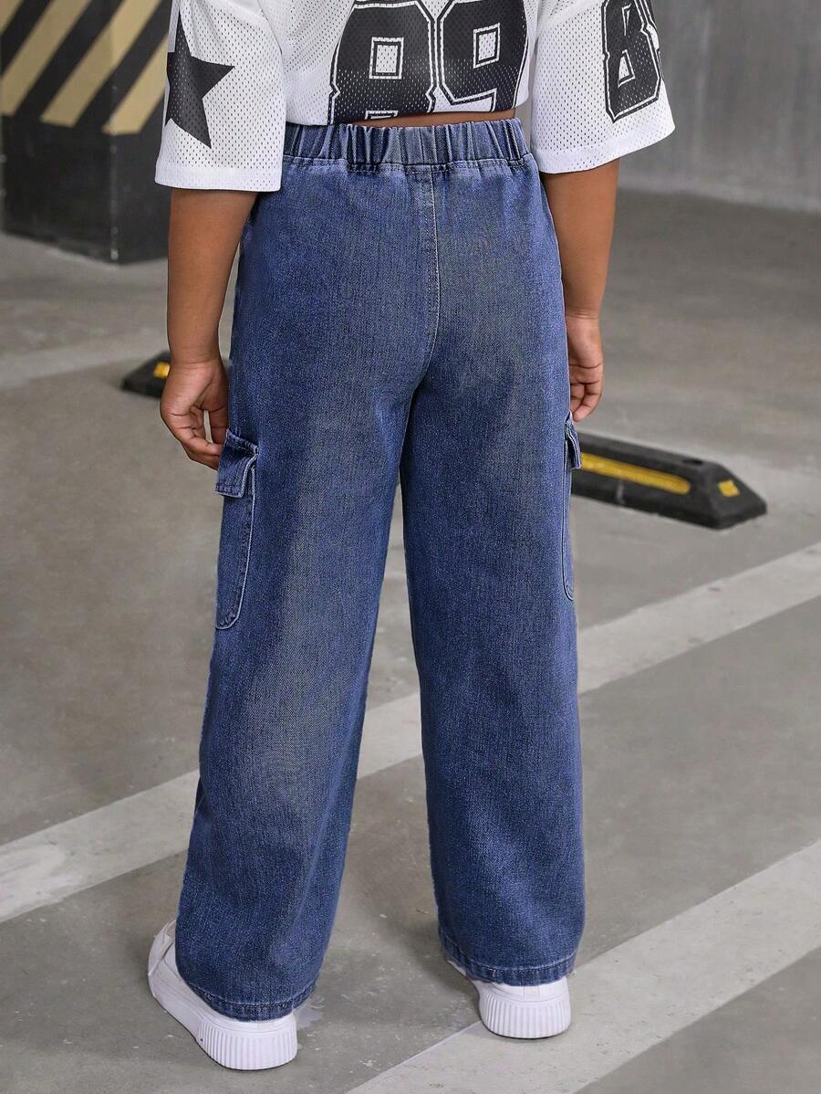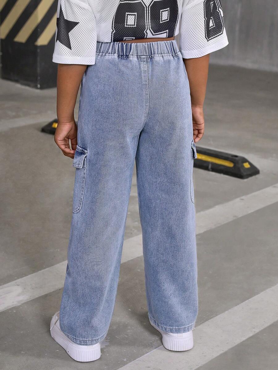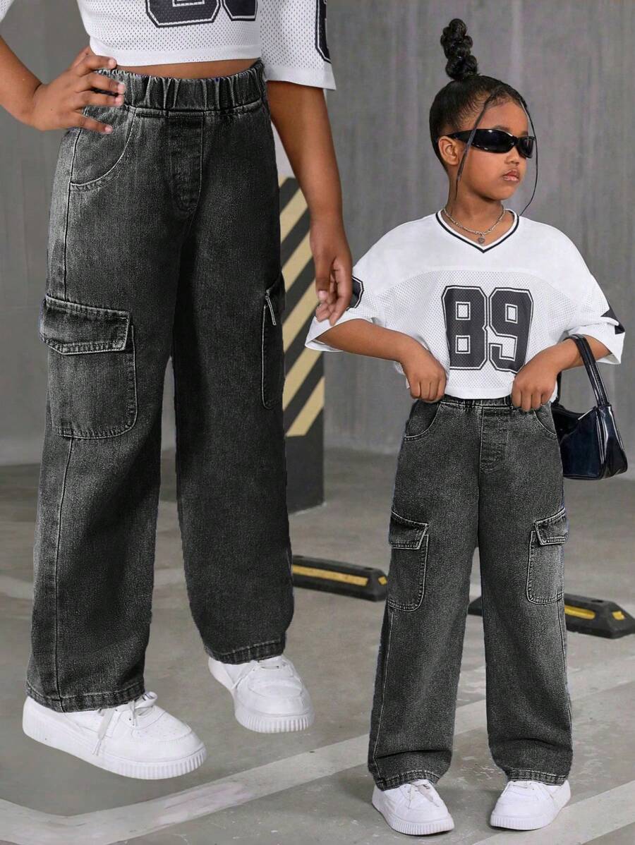 Girls Wide Leg Cargo Denim Jeans – Loose Fit Streetwear Casual Pants