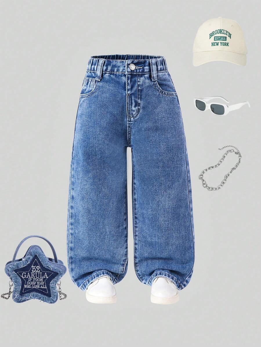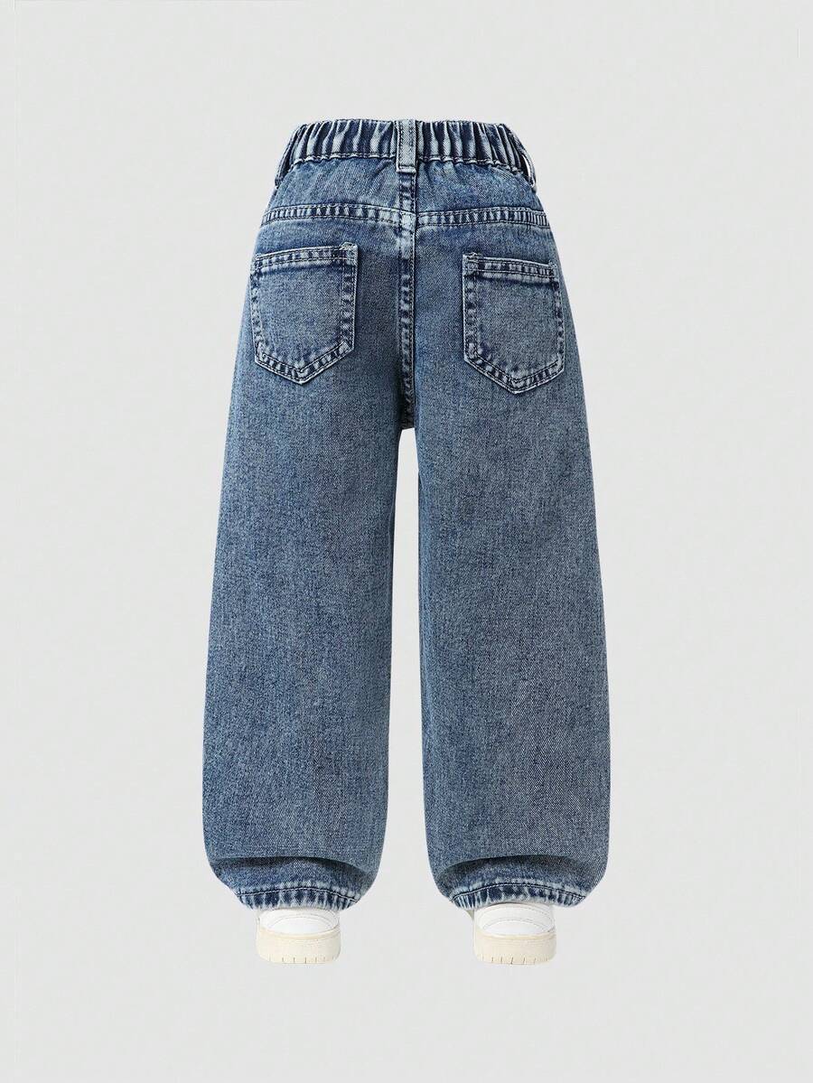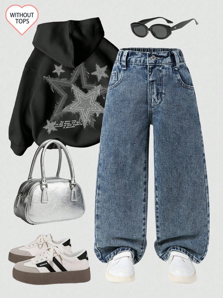 Stylish Y2K Street Jeans for Young Girls – High Waist Wide Leg Denim Pants