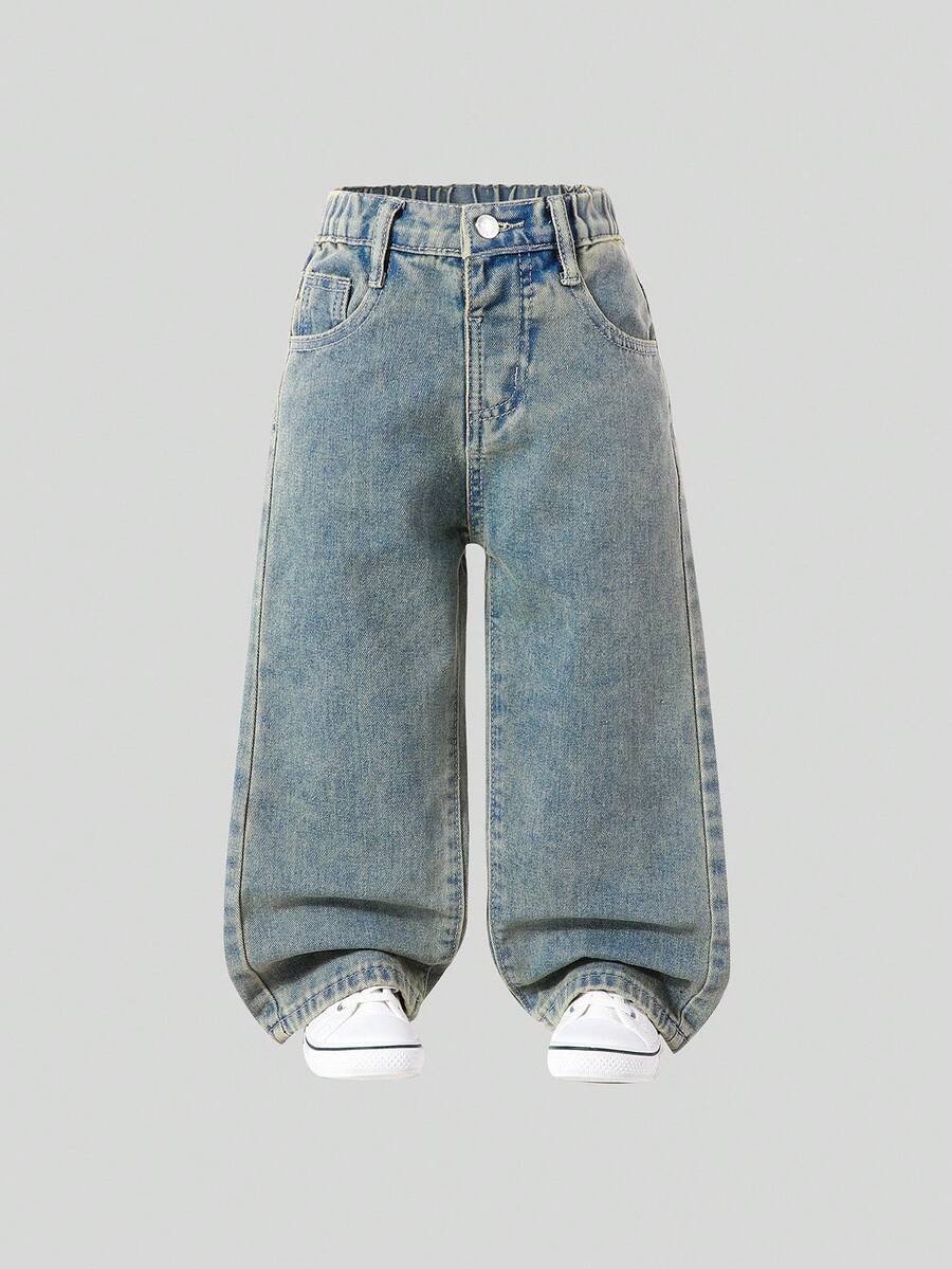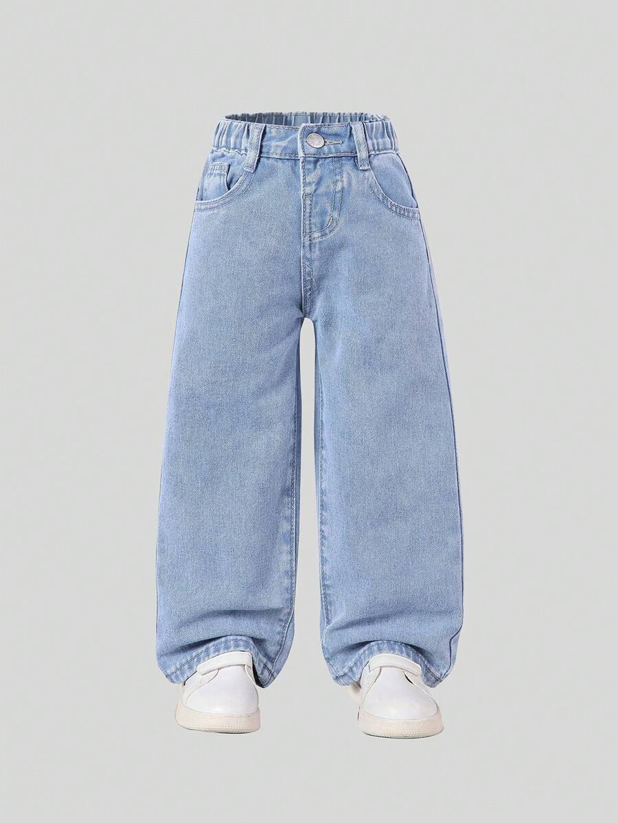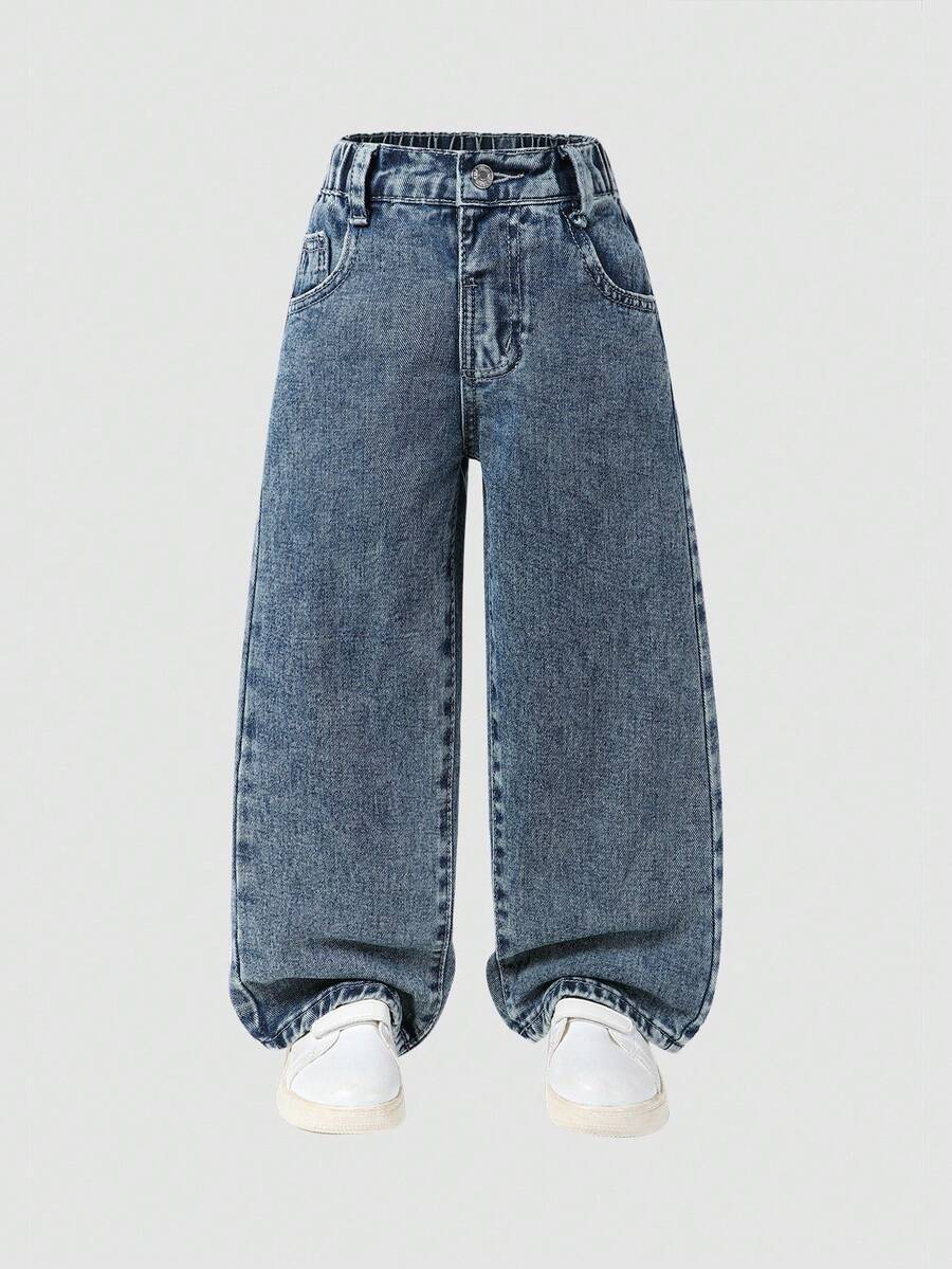 Stylish Y2K Street Jeans for Young Girls – High Waist Wide Leg Denim Pants