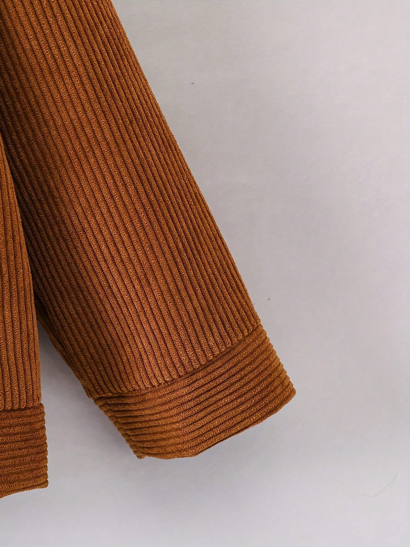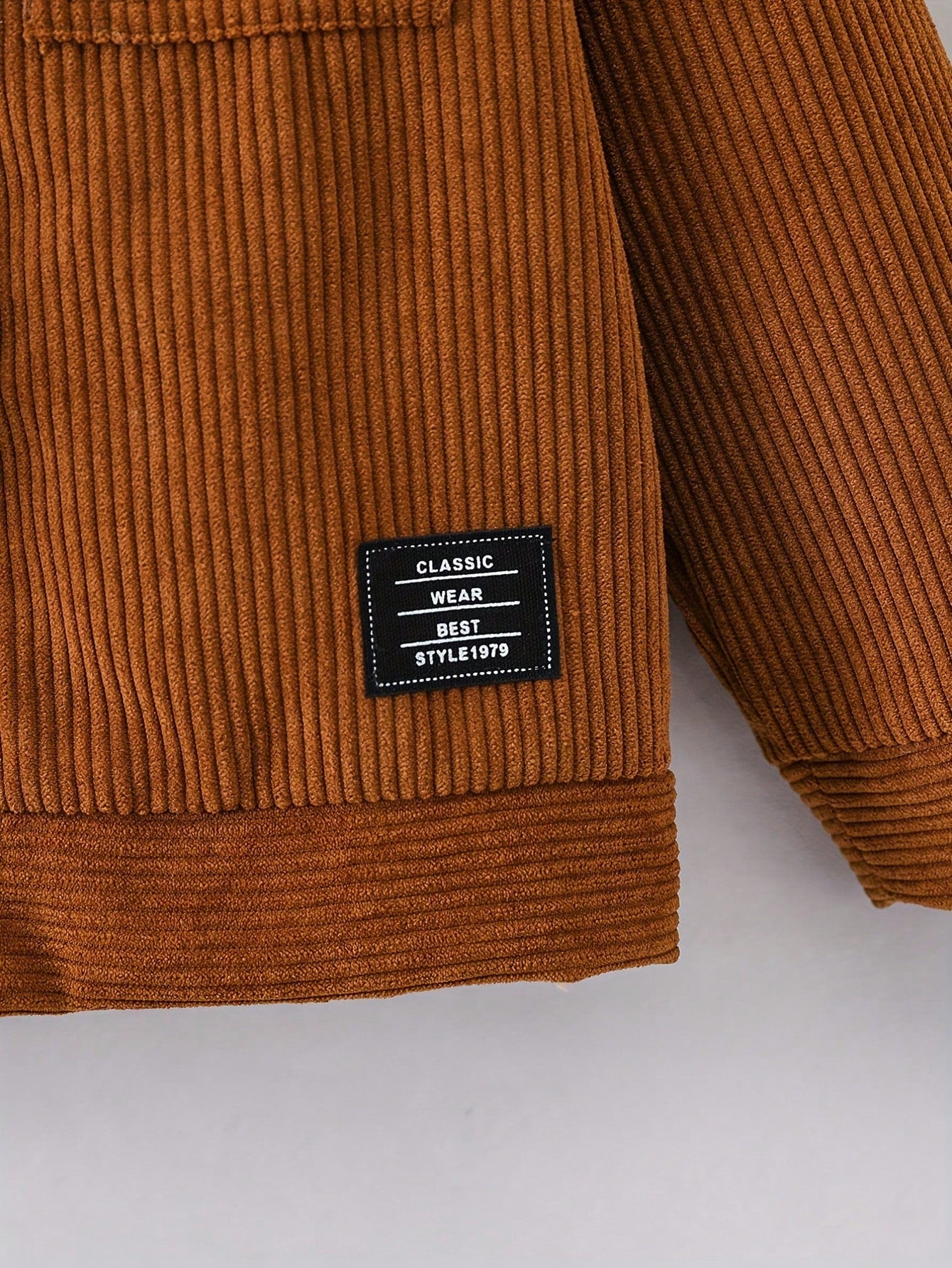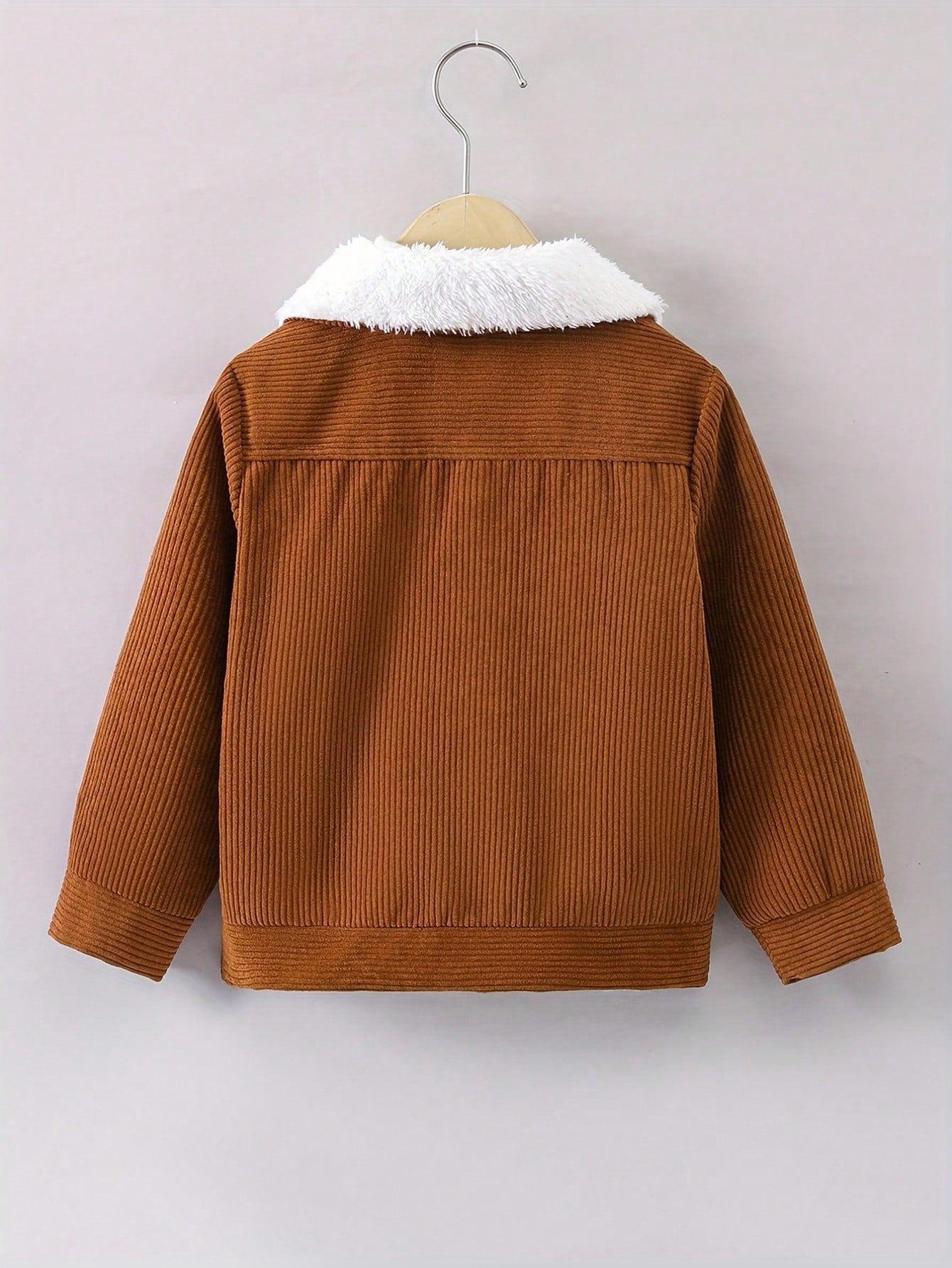 Young Boy Corduroy Patchwork Jacket with Fleece Collar – Lightweight Spring & Autumn Outerwear
